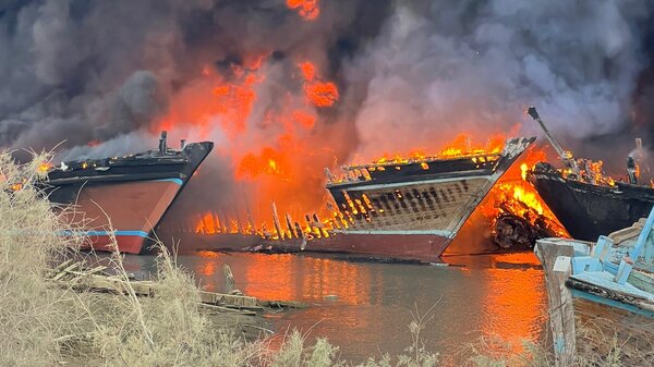 چندین لنج باری در اسکله پارسیان در غرب هرمزگان طعمه آتش شدهاند و در حال سوختن هستند.